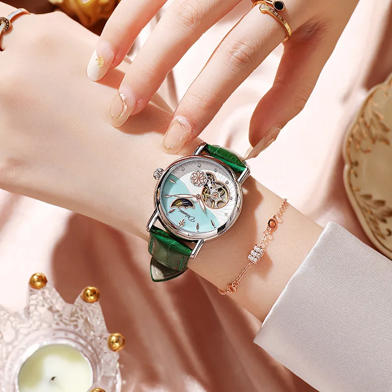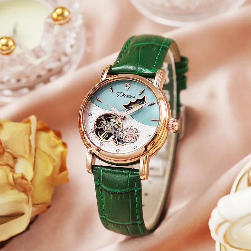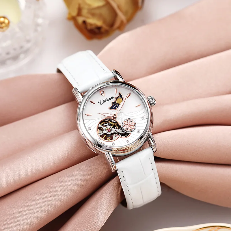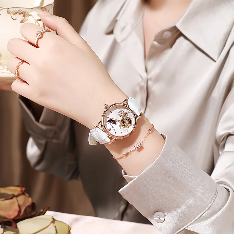 Rotatable Flowers: This watch features a unique design element with rotatable flowers, adding a touch of elegance and charm to its overall appearance. The rotating flowers offer a dynamic visual element that sets this watch apart from others.