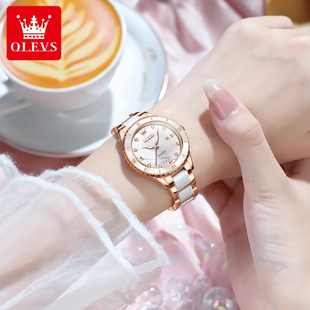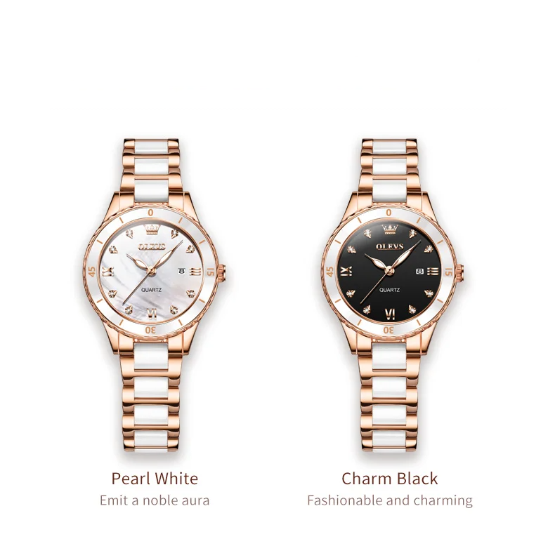 Ceramics Quartz Wristwatch for Ladies: This wristwatch features a ceramic construction, offering durability and a luxurious aesthetic appeal. The quartz movement ensures accurate timekeeping, making it a reliable accessory for daily wear.